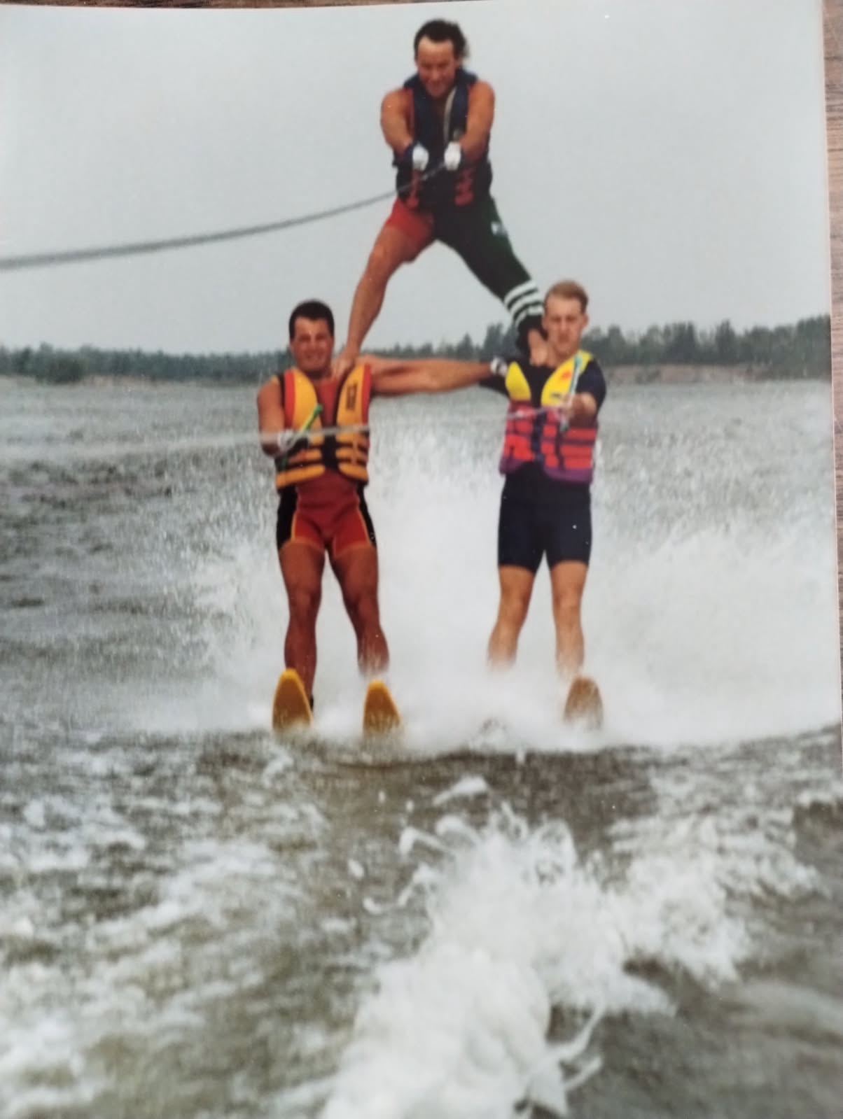 It’s my dad, and a family friend and me, water skiing, with my dad standing on our shoulders. It’s the kind of moment that feels almost unreal when you look at it now. Equal parts bold, chaotic, and somehow perfectly executed.