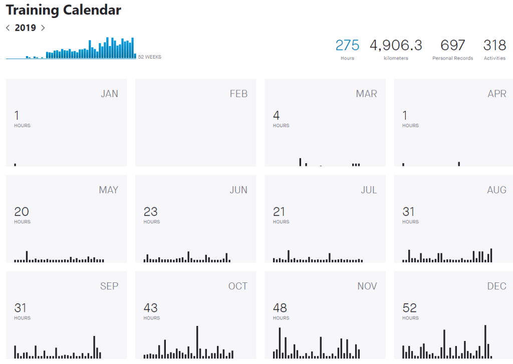 For years my training had suffered from inconsistency. I would register for a race and do about 75% of the workouts in a training plan, participate in the race and then would stop training. January 5th, 2020 marked day 250 of my exercise streak, it was a 2:24:31 bike ride on my trainer watching Team Canada win Gold at the world junior hockey tournament.